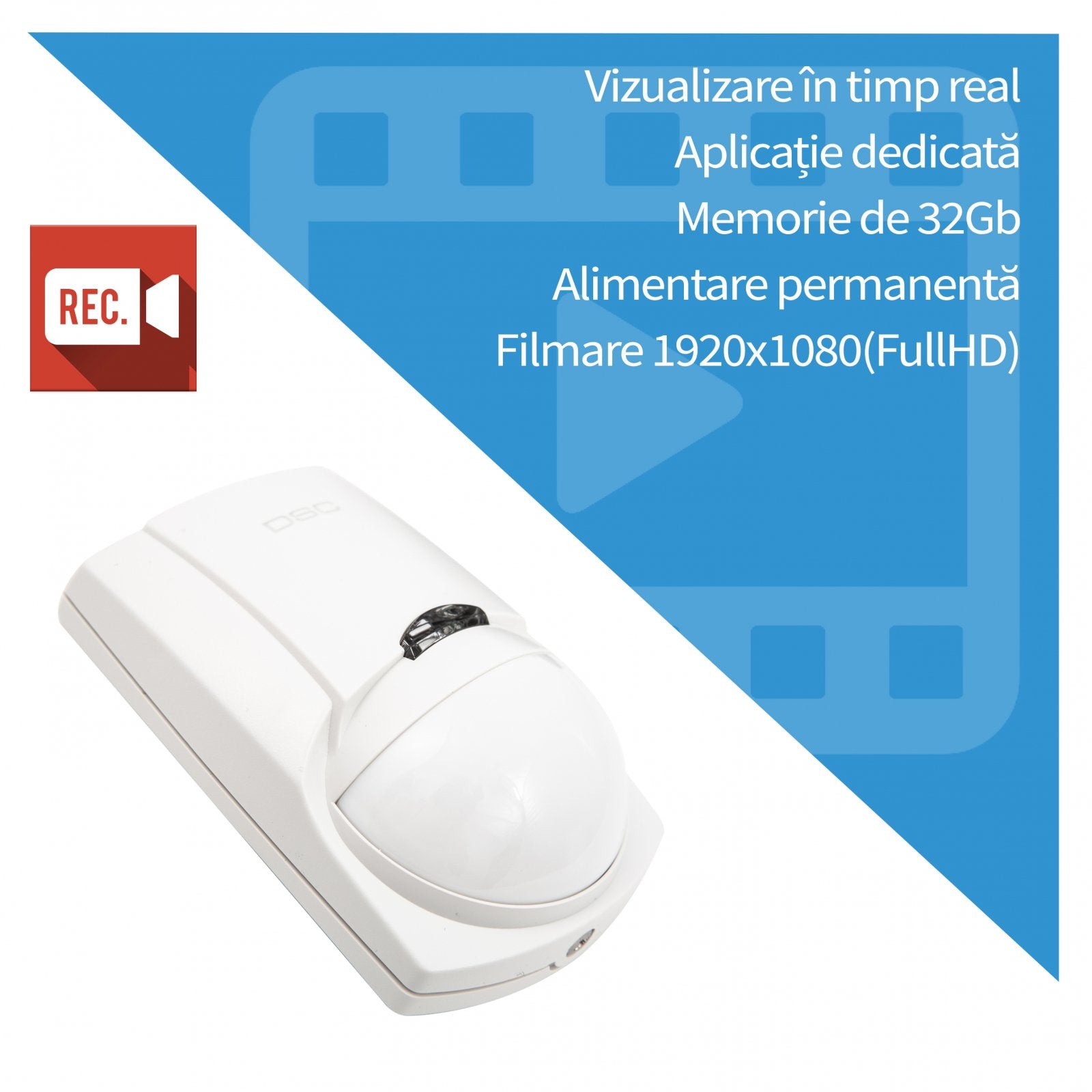 Senzor de prezenta PIR SPCSWIIP121 model noiembrie 2016, cu camera video wi-fi ip 1080P incorporata , include 3 functii DVR (inregistrare ), wi-fi P2P ( puteti urmari direct pe smartphone sau tableta ) sau IP ( vizualizare de oriunde din lume prin internet ). Din cauza dimensiunilor foarte compacte functionarea senzorului PIR , functionarea senzorului de prezenta original nu mai este posibila. Nota: Inregistrarea imaginilor la detectia miscarii este realizata de catre modulul de microcamera.